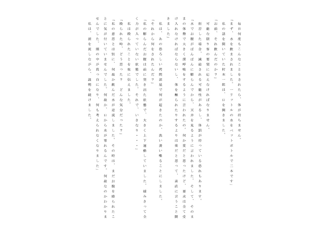 もしかしたら、無防備な水腹に何かをされたのかと思いました。